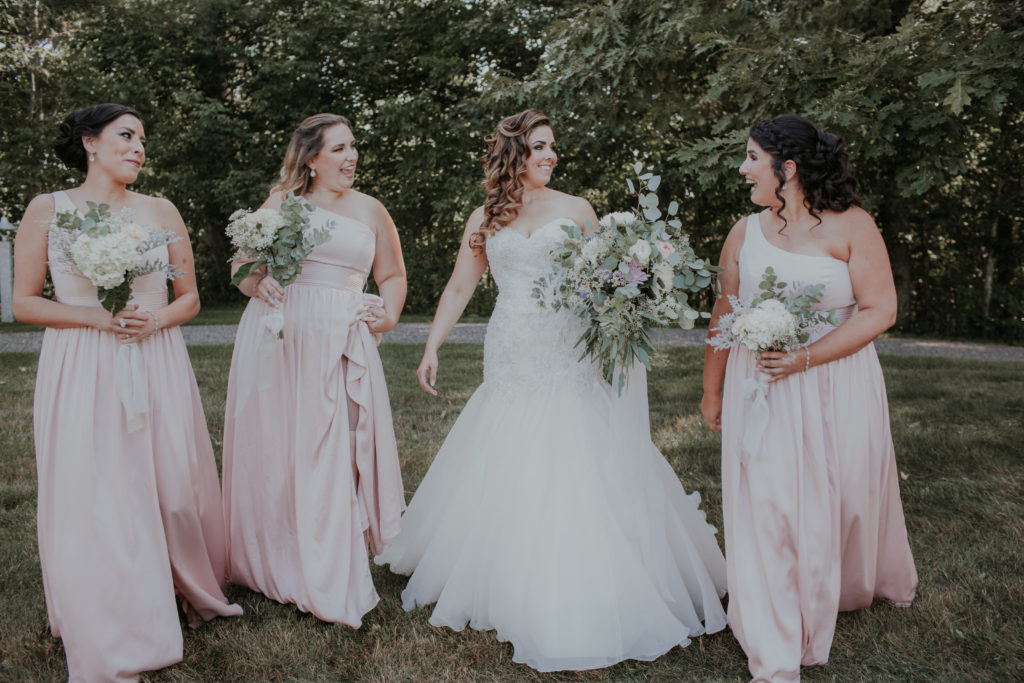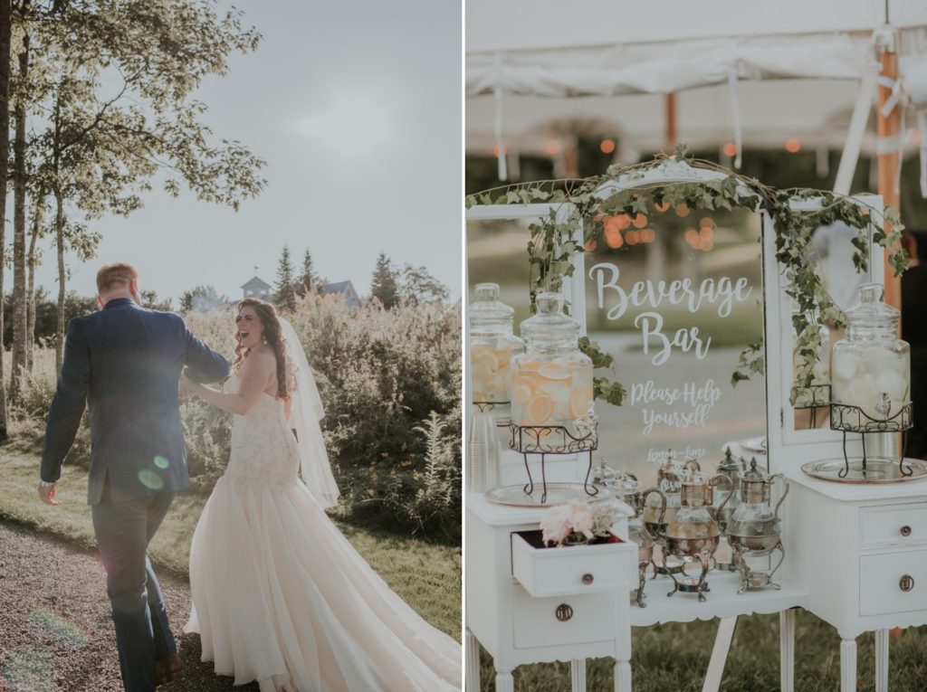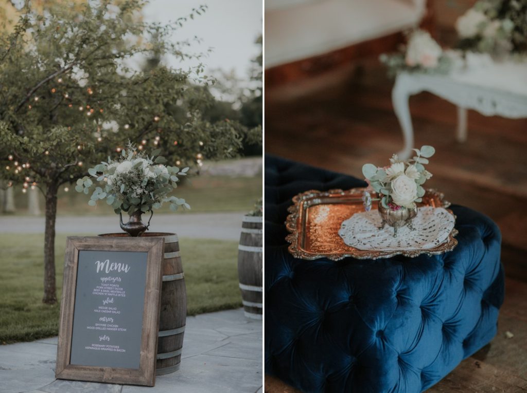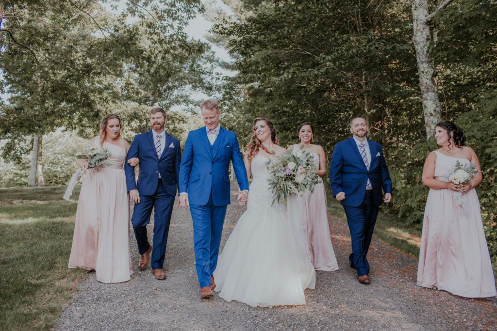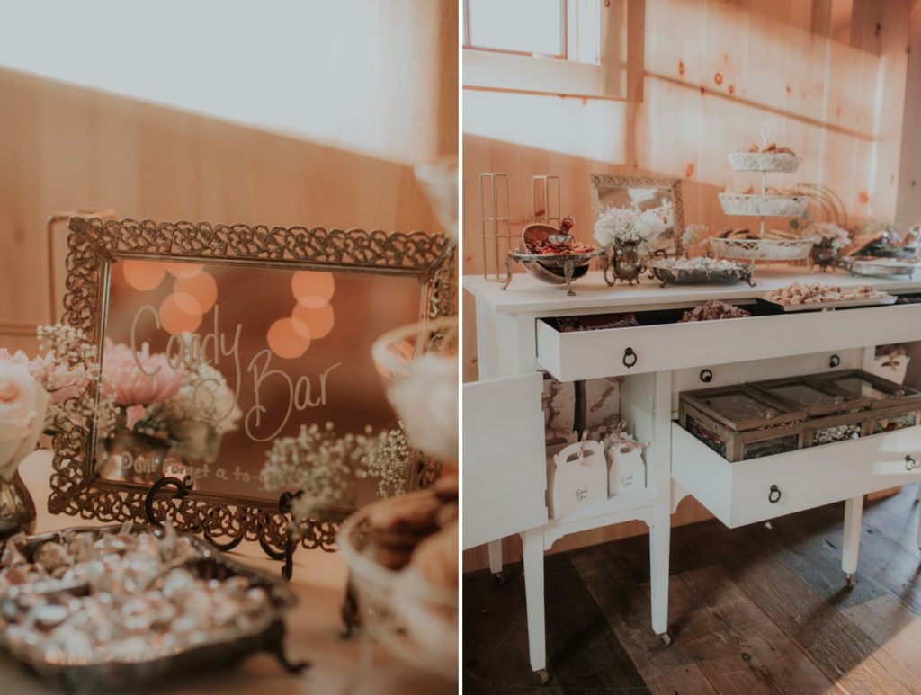 We love these memories captured by Kivalo Photography of this beautiful early September destination wedding. Heather and Doug live in Colorado and wanted to provide their guests with a full Maine experience with ample room to celebrate with their family and friends. They really thought of all the details by adding a lounge space with antique couches and a desert and candy bar area with refurbished hutches and tables. Visit East Coast Vintage Co. to view these carefully curated vintage items.