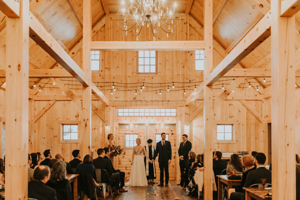 The beauty of Beech Hill Barn speaks for itself. Located on a picturesque 200-acre property in Pittston, Maine, the venue offers stunning views of the surrounding countryside—ideal for outdoor ceremonies and unforgettable wedding photos.